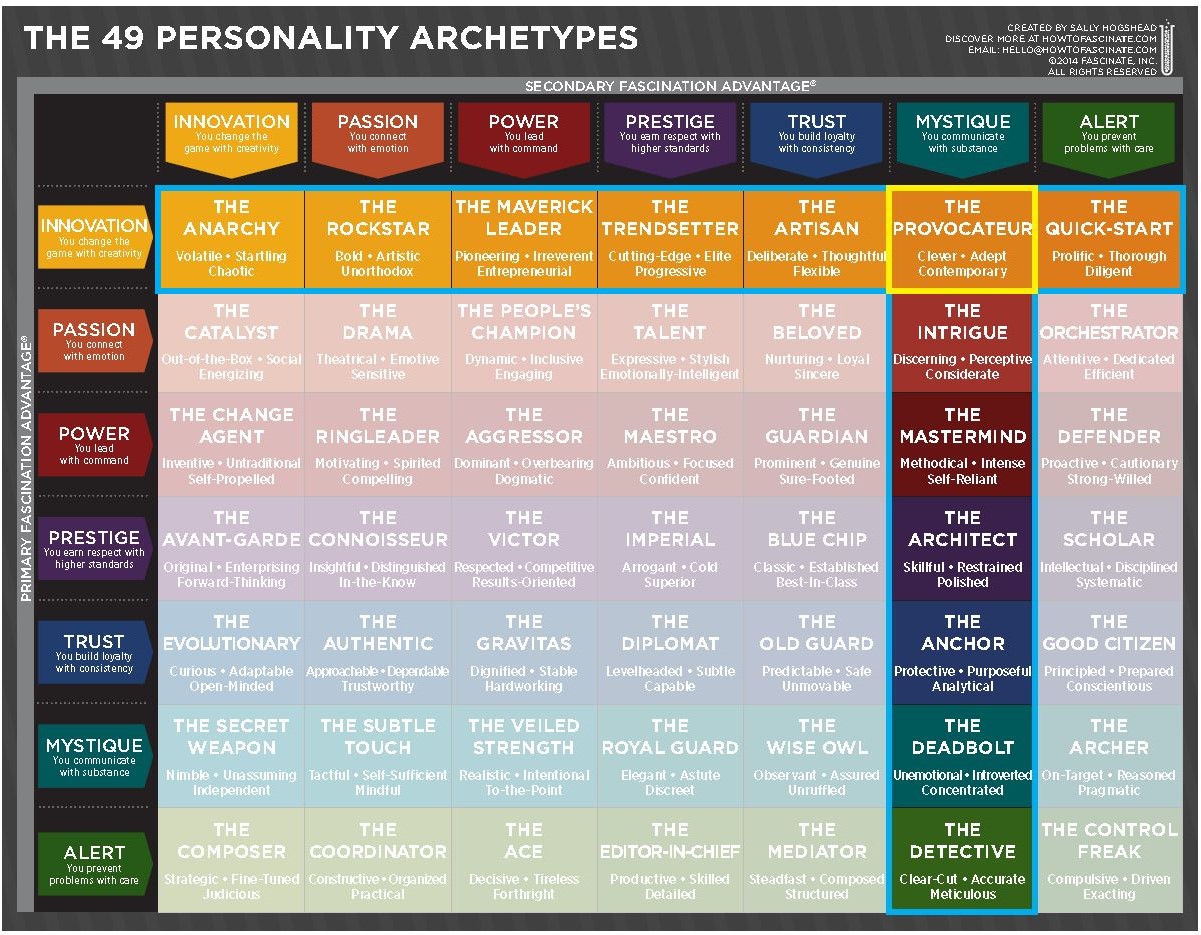 私の場合なら、イノベーション×神秘性=密偵 がアーキタイプです。